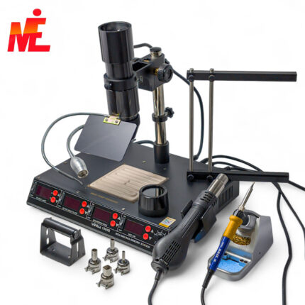 Технические характеристики Паяльная станция Номинальное напряжение: 240В/230В/220В/110В ±10% 50Гц/60Гц Потребляемая мощность: ≤1000Вт Пистолет подачи горячего воздуха Диапазон температур: 100°C~500°C Режим