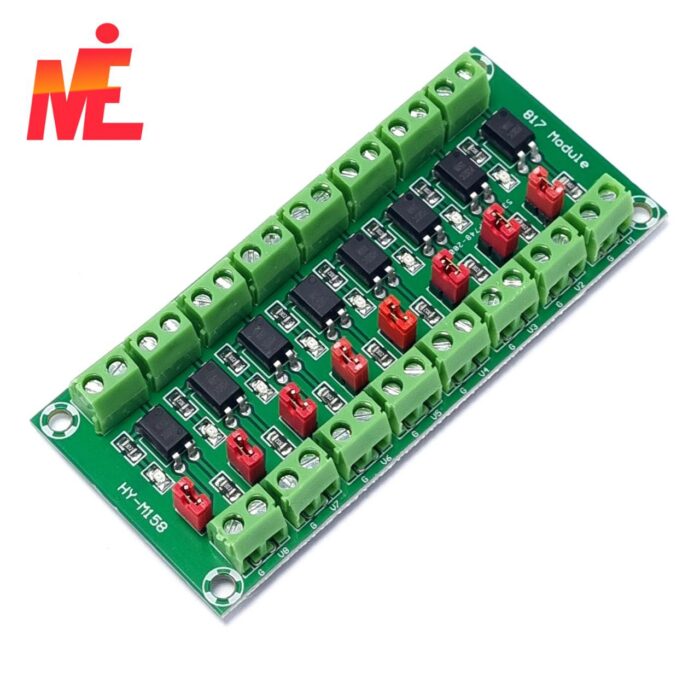 Этот модуль позволяет использовать сигнал низкого уровня для управления напряжением более высокого уровня, например, напряжением 3 В или 5 В, управляющим напряжением 9 В или 12 В. Он использует оптоизолятор PC817. Поставляется с восемью каналами. Отлично подходит для использования в шумных цепях, где сигнальные линии требуют электрической изоляции