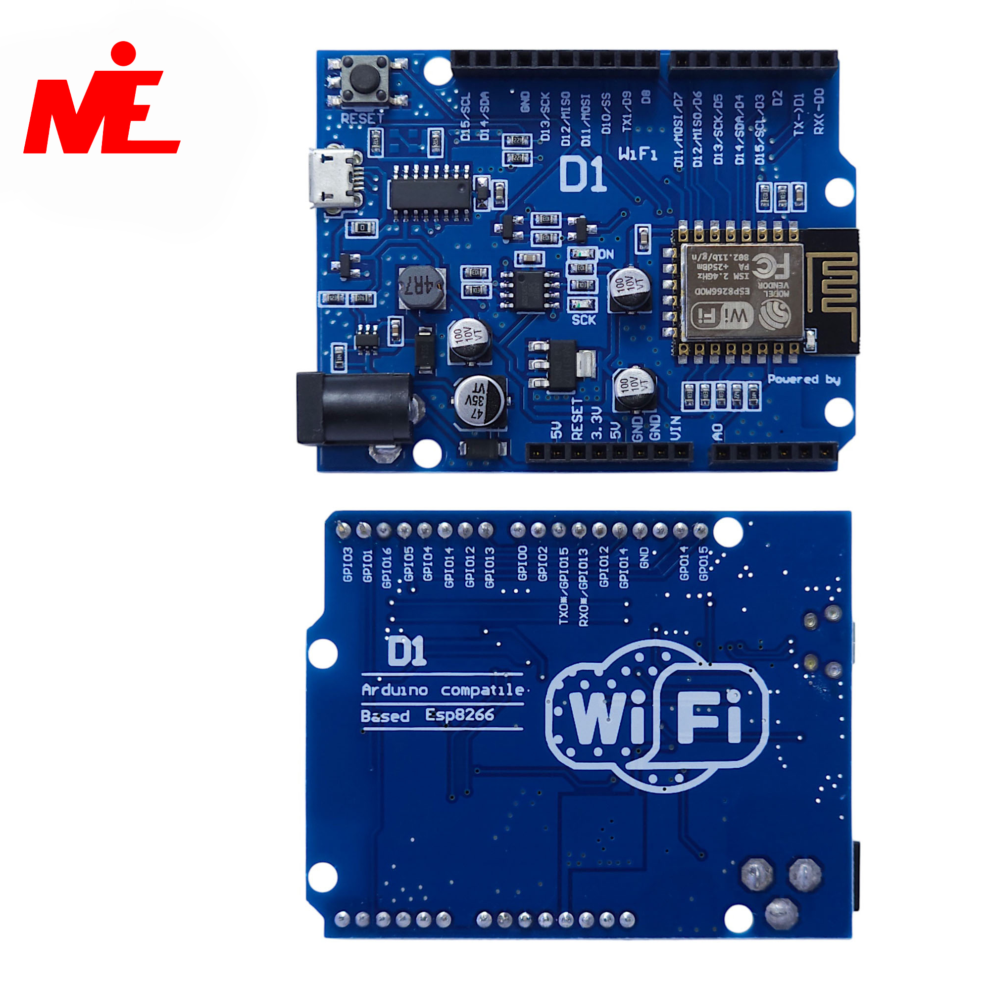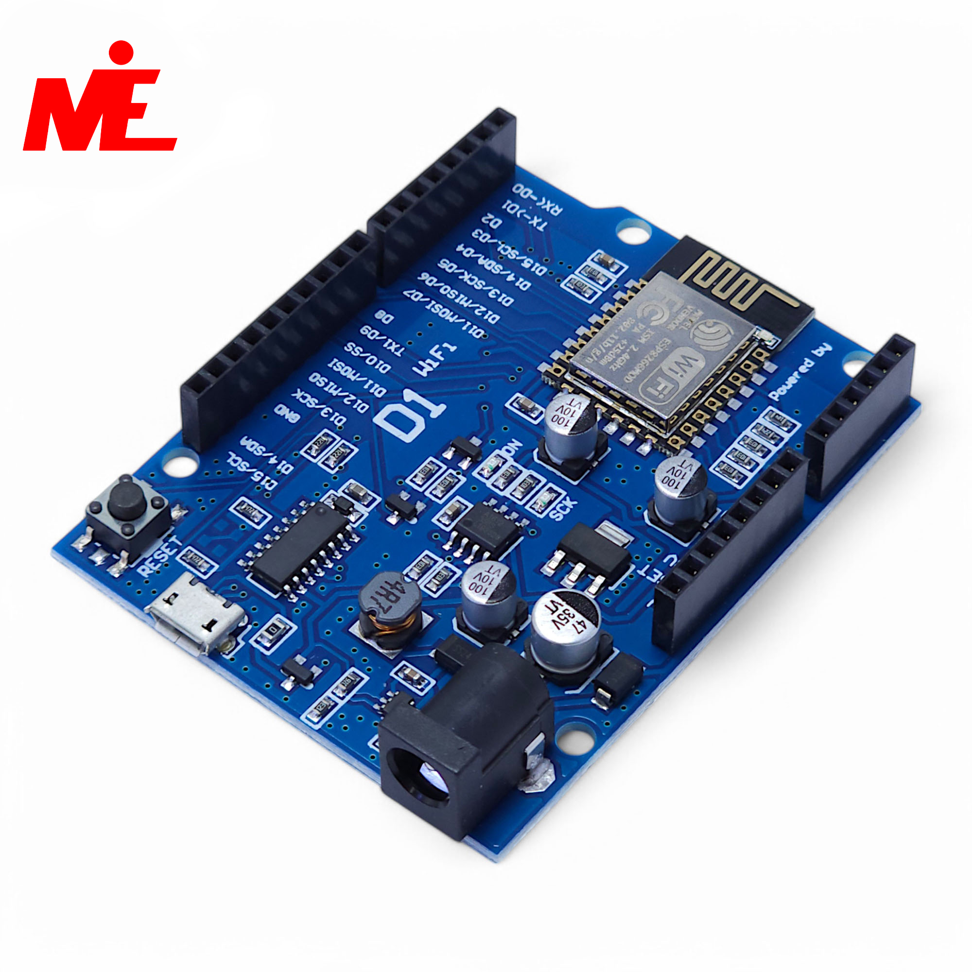Плата оснащена встроенным Wi-Fi (802.11 b/g/n), позволяя создавать «умные» гаджеты, управляемые через интернет, без покупки дополнительных модули связи. Программирование осуществляется через привычную среду Arduino IDE (через Micro-USB порт на базе чипа CH340), также поддерживаются NodeMCU и MicroPython. Для подключения периферии доступны 11 цифровых пинов (все поддерживают прерывания, PWM, I2C и 1-Wire) и один аналоговый вход.