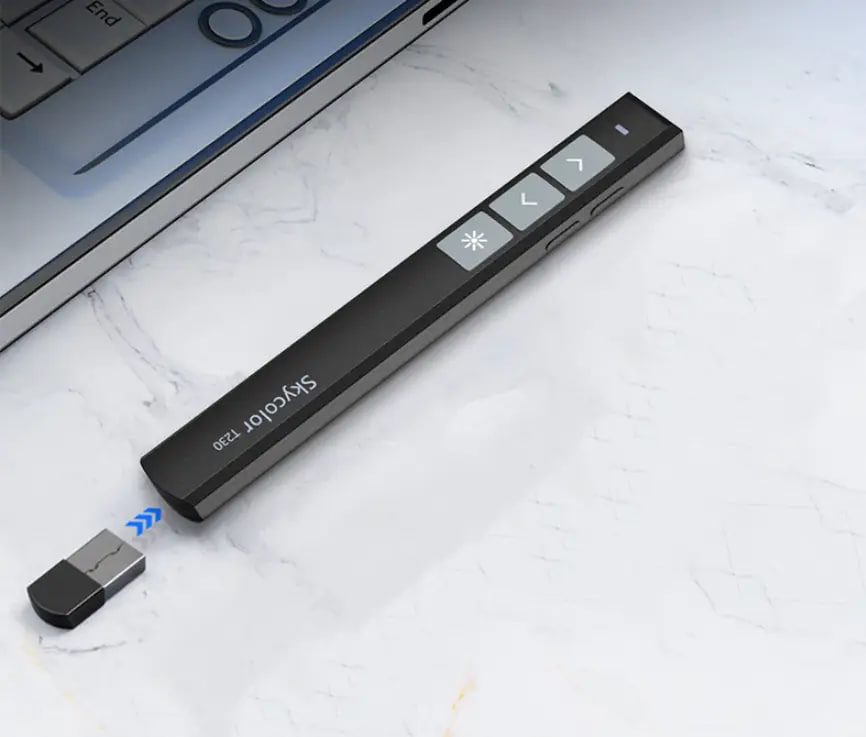 Беспроводной USB презентер пульт Skycolor T230 с лазерной указкой – это многофункциональный гаджет, который станет Вам незаменимым помощником при проведении презентаций.