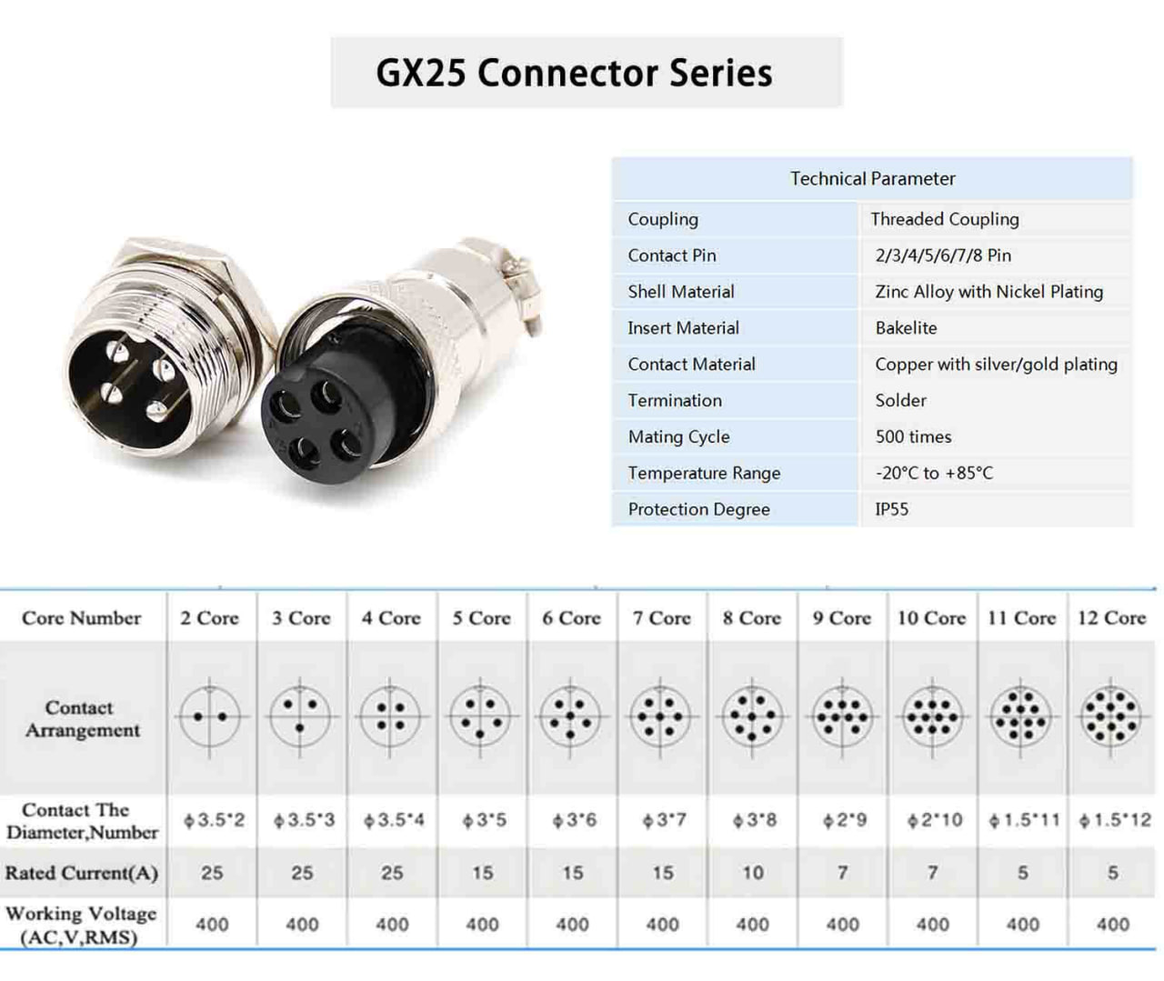 Разъем GX25 2/3/4/5pin металл, комплект мама-папа