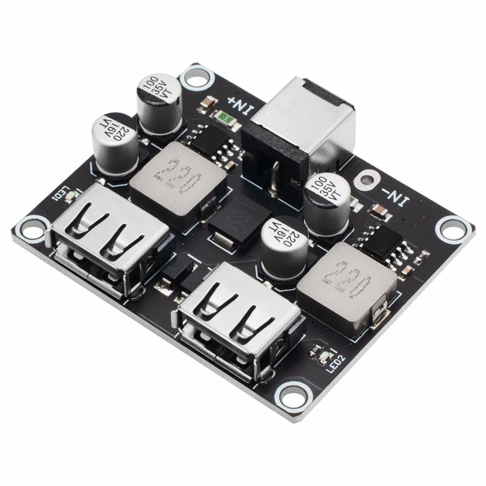 Данная плата применяется в солнечных панелях ( для преобразования напряжения солнечной батареи в стабилизированные 5V), преобразователях напряжения в автомобиле и других устройствах, интеллектуальное преобразование домашнего блока питания в устройство 5V, поддерживающее быструю зарядку сразу 2 устройств*.