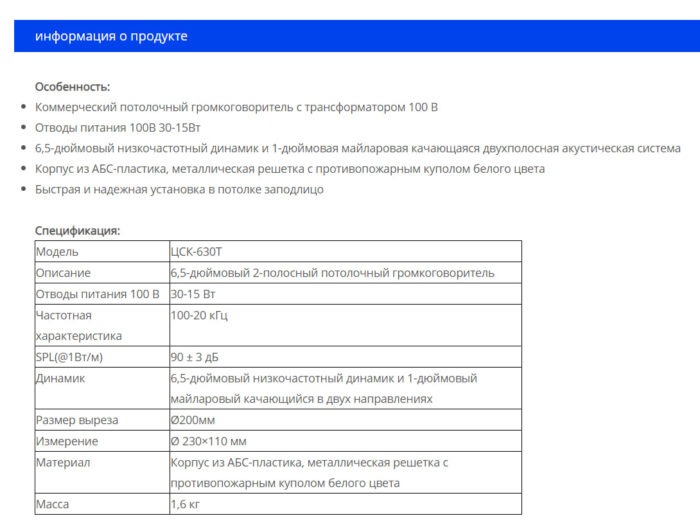 CSK-630T — это один 6,5-дюймовый коаксиальный потолочный громкоговоритель мощностью 30 Вт/15 Вт с трансформатором 100 В, который идеально подходит для систем фоновой музыки и систем громкой связи.