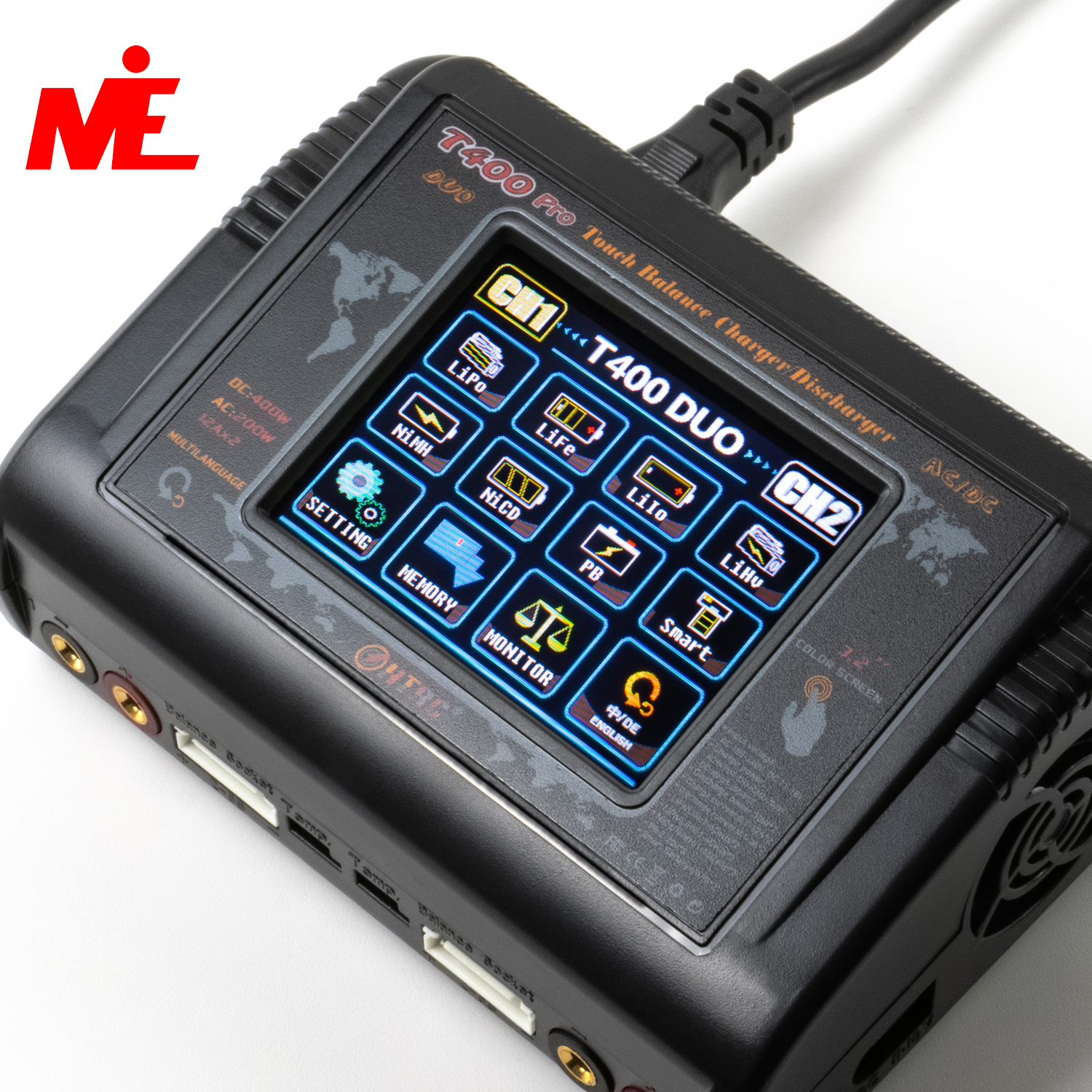 Rangli sensorli ekranga ega professional ikki kanalli quvvatlash qurilmasi. Bir vaqtning o‘zida ikkita akkumulyatorni zaryadlash, quvvatsizlantirish va balanslash imkonini beradi. Barcha turdagi batareyalarni qo‘llab-quvvatlaydi: LiPo, LiFe, LiIon, LiHv, NiCd, NiMh, Pb. 220V rozetkadan ham, tashqi quvvat manbaidan (masalan, avtomobil akkumulyatoridan) ham ishlaydi. Quvvati: AC 200W / DC 400W. Zaryadlash toki har bir kanalga 12A gacha.