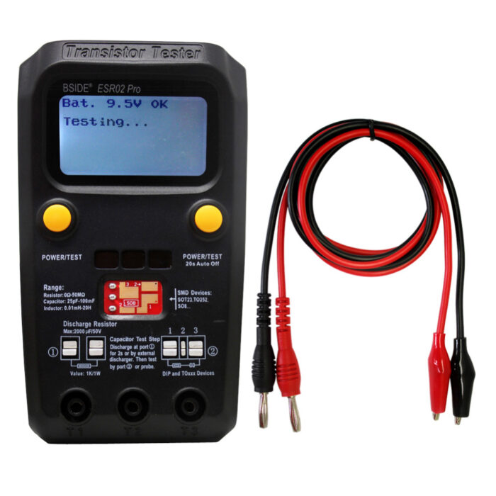 ESR (эквивалентное последовательное сопротивление) от 2 мкФ до 10 мФ: разрешение 0,01 Ом