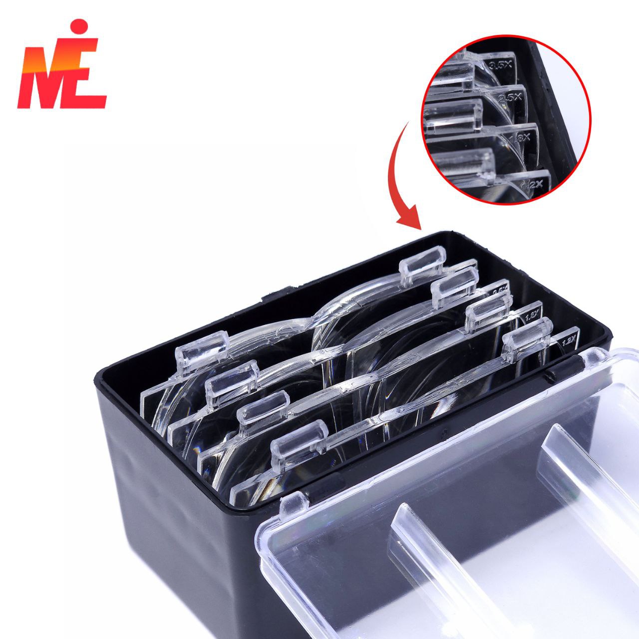 В комплекте поставляются 4 сменные линзы с различной степенью увеличения. Одновременно можно использовать 2 линзы. Для удобства линзы сделаны откидными.