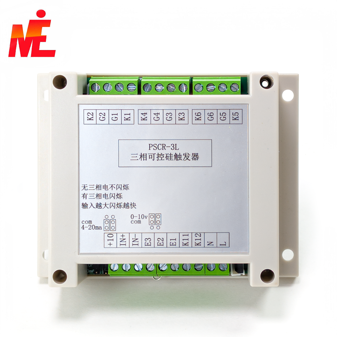 PSCR-3L — это трёхфазный тиристорный модуль управления, используемый для управления тиристорами (SCR) в трёхфазных схемах. Он позволяет точно регулировать угол включения и контролировать мощность, подаваемую на нагрузку.