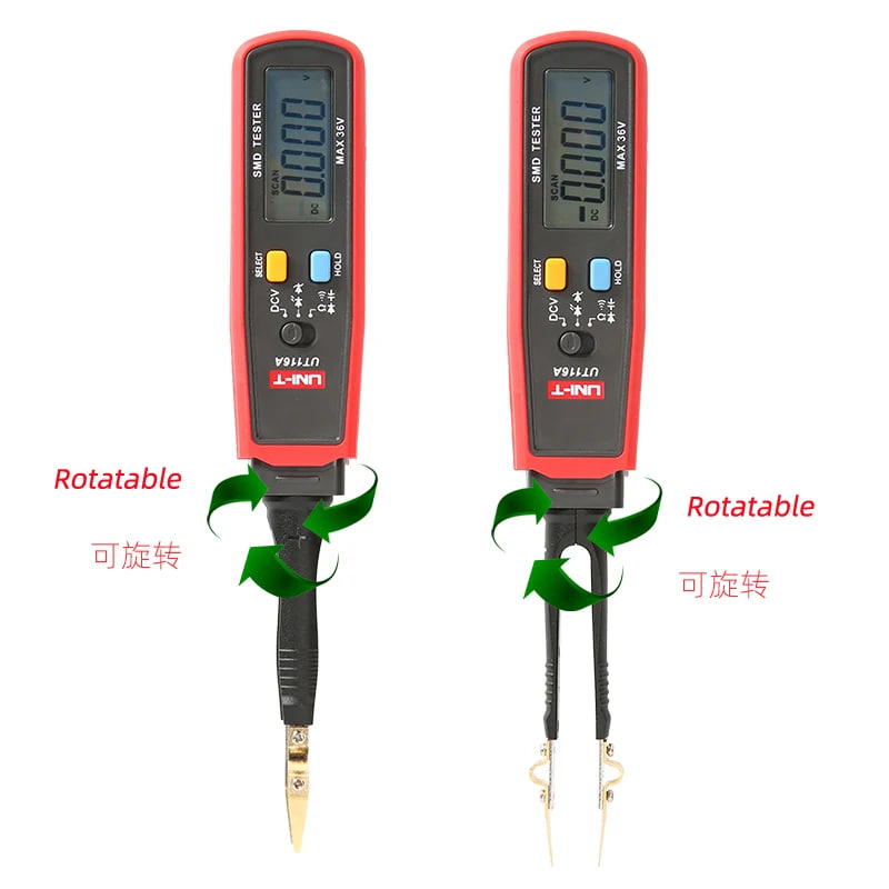 Миниатюрный тестер-пинцет UT116C, производства UNI-T, позволяет измерять напряжение постоянного тока, сопротивление, емкость, производить прозвонку цепей, проверку стабилитронов и светодиодов.